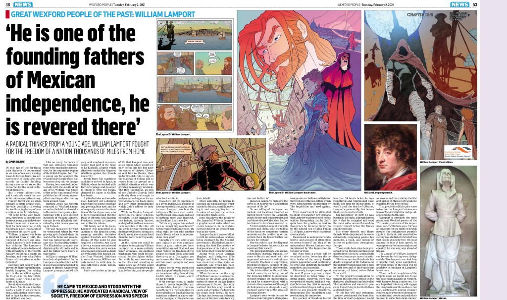 Journalist Simon Bourke of The Wexford People recently wrote an in-depth article about William Lamport. It’s particularly significant to see such coverage in the publication as Wexford is Lamport’s home county. The article also features great coverage on ‘The Legend of William Lamport’ and features the art and design of Cormac Hughes, Ellie Wright and Robin Jones.