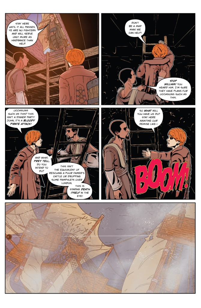 Lamport’s voyage to Spain finds itself under attack by a band of pirates. He and his mentor John now find themselves caught in an unexpected battle for survival.